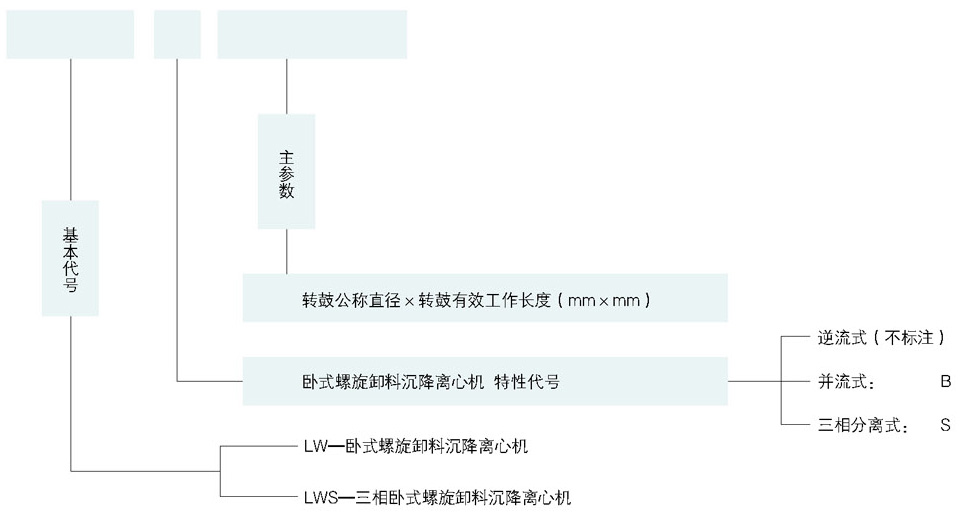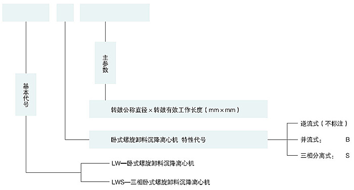 二、卸料沉降臥螺離心機(jī)的型號(hào)編制方法